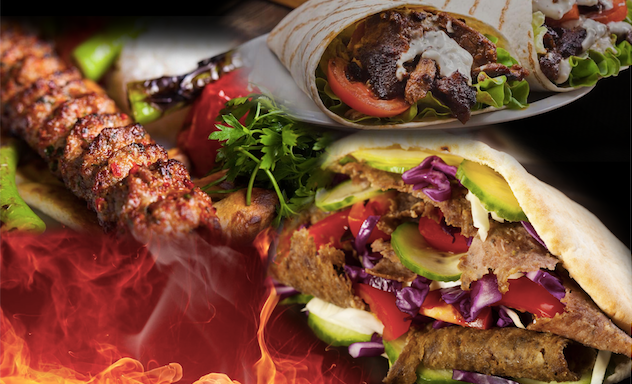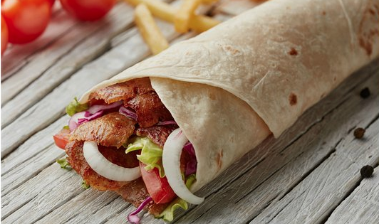 Lamb, chicken doner, or Chicken Shish wrapped in flat bread with salad and sauce